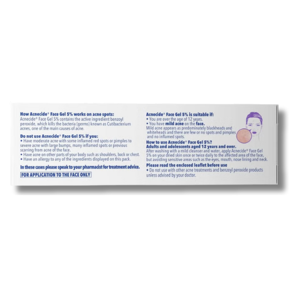 Target acne effectively with the Acnecide Face Gel Spot Treatment, a powerful leave-on solution designed to combat facial acne while caring for your skin. Formulated with 5% benzoyl peroxide, this gel helps reduce acne-causing bacteria, clear breakouts, and restore skin’s natural balance.