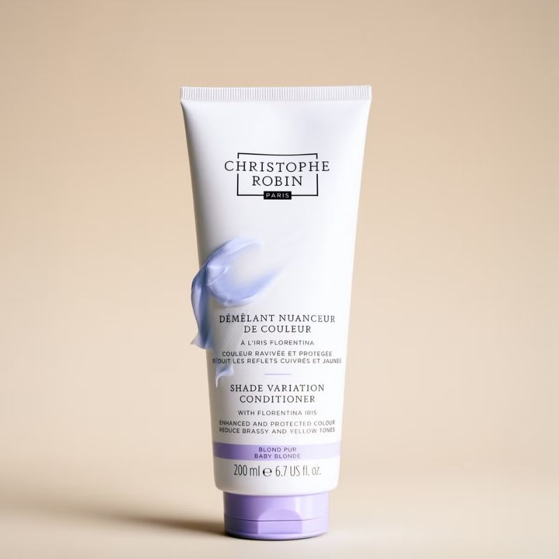 Specially formulated for natural, coloured, bleached, or highlighted blonde hair, the Christophe Robin Shade Variation Conditioner helps restore visible vibrancy, manageability, and luminous shine while neutralising unwanted brassy and yellow tones.