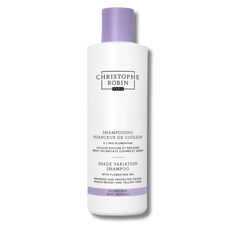 Christophe Robin Shade Variation Shampoo for Blonde Hair is a luxury purple shampoo designed to refresh and enhance the brightness of blonde, highlighted, or bleached hair. This colour-correcting formula helps neutralise unwanted brassy and yellow tones, leaving blonde hair luminous and vibrant.