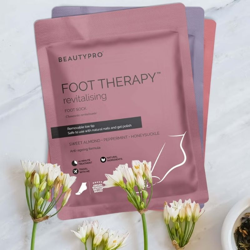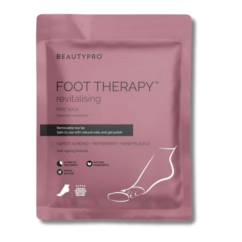 Revive dry, tired feet with the BeautyPro Foot Therapy Booties with Removable Toe Tips, an intensive foot care treatment designed to deeply nourish and soften in just 20 minutes. Ideal for use during a pedicure, the dual-layer booties feature removable toe tips, allowing you to continue nail treatments while the mask works.