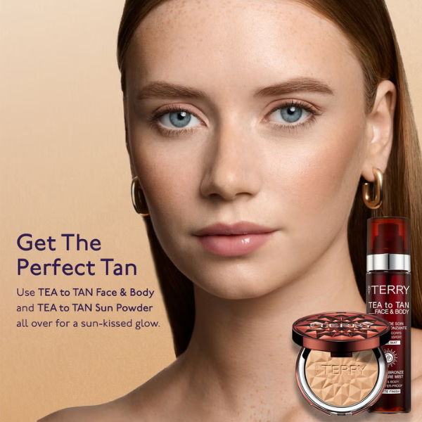 Infuse your complexion with a natural, sun-kissed glow using By Terry Tea to Tan Sun Powder, a buttery, weightless bronzer enriched with hydrating skincare actives. Designed to deliver a smooth, soft-focus finish, the finely milled powder blends seamlessly into the skin, enhancing warmth and radiance without heaviness.