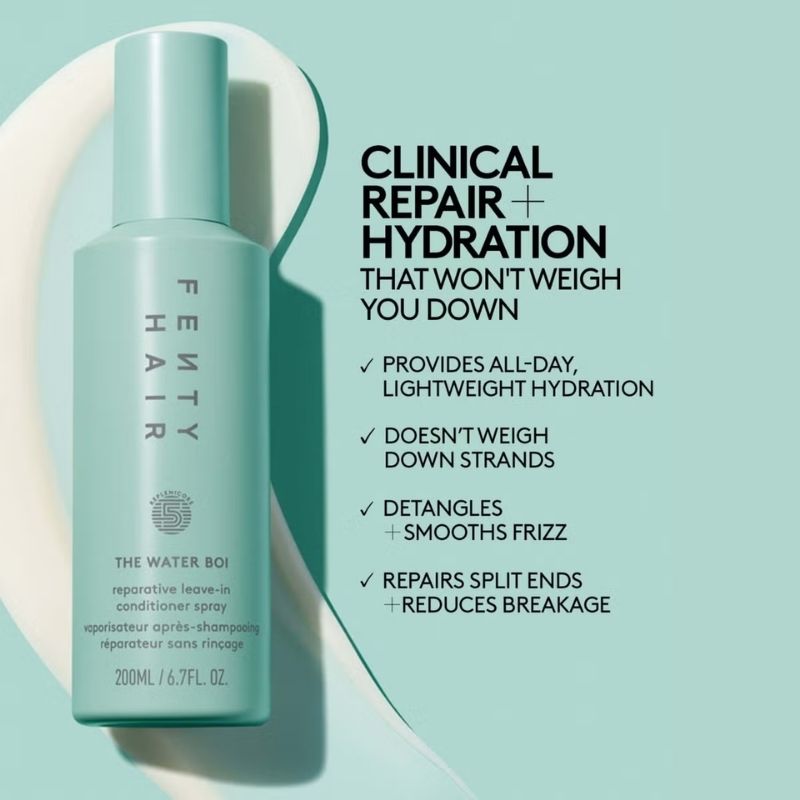 Give your hair the ultimate moisture boost with Fenty Hair Water Boi Leave-In Conditioner, a lightweight, multi-tasking treatment that hydrates, protects, and smooths in one effortless step.