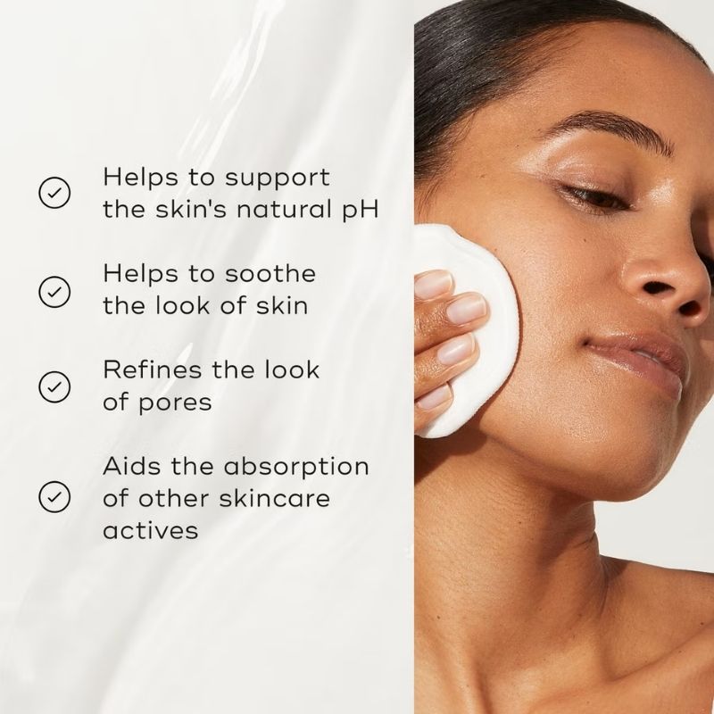 The gentle toner helps to sweep away dead skin cells and impurities without disrupting the skin’s natural pH. Witch hazel works to minimise the appearance of enlarged and congested pores, while prebiotics support a more balanced look to oil levels.