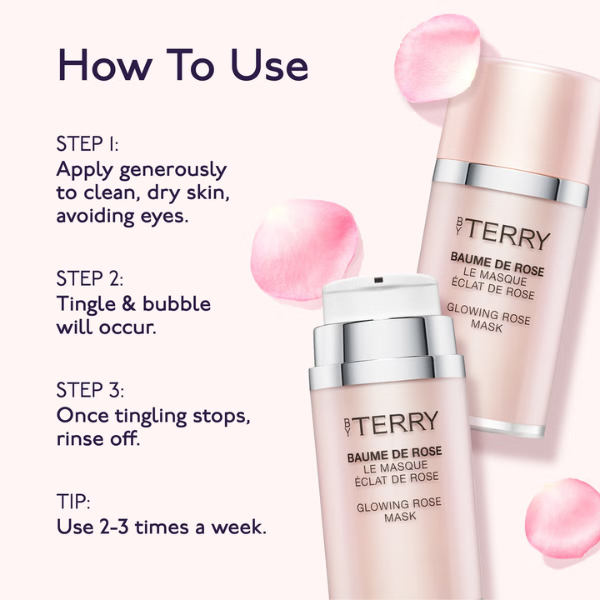 Revitalize your complexion with the By Terry Baume de Rose Glowing Mask, a luxurious treatment designed to uplift, purify, and brighten the skin. This innovative gel-to-foam mask reoxygenates and restores skin while deeply cleansing pores and removing dead skin cells, dirt, and residual makeup. Enriched with AHAs, Rosehip Oil, Black Rose, and Vitamin E, it delivers hydration, antioxidant protection, and visible radiance, helping to strengthen the skin’s natural barrier against environmental stressors, UV damage, and premature aging. The mask leaves a subtle tingling sensation as it regenerates the surface, revealing smoother, luminous, and revitalized skin.