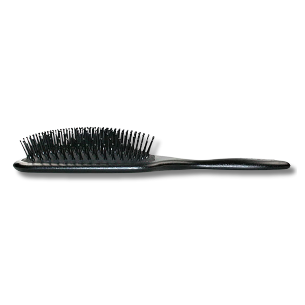 Featuring ball-ended pins set into a soft air-cushioned pad, the brush gently glides through the hair to remove knots while minimising pulling and discomfort. The flexible pins are kind to both hair and scalp, while the large paddle design offers increased surface coverage that adapts to the natural contours of the head, making styling quicker and more efficient.