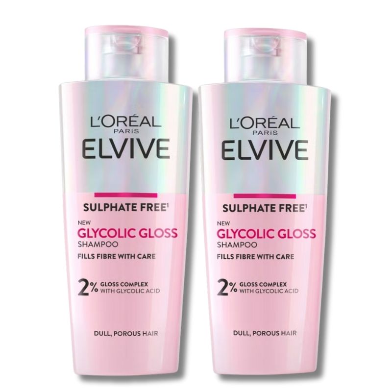 L’Oréal Paris Elvive Glycolic Gloss Sulphate-Free Shampoo for Dull Hair – 200ml (x2)