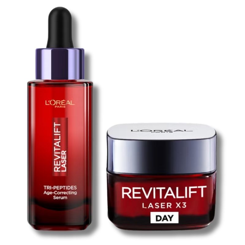 L'Oréal Paris Revitalift Laser Age-Correcting Routine Bundle with Tri-Peptides Serum 30ml & Day Moisturiser 50ml