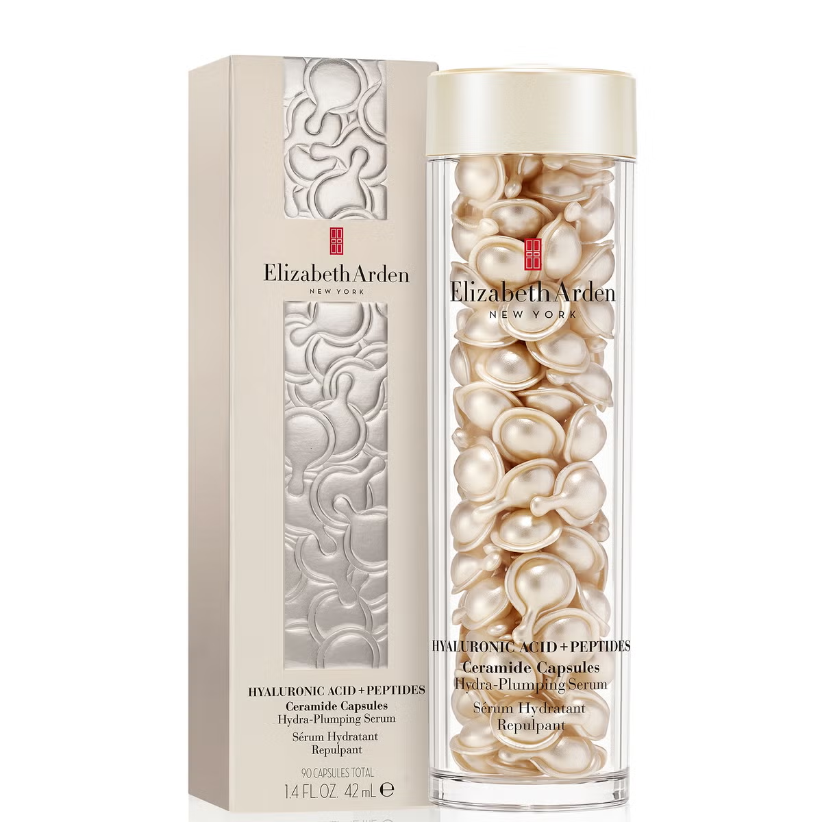 Each Elizabeth Arden Hyaluronic Acid + Peptides Ceramide Capsule is designed to visibly smooth, plump, and strengthen the skin with a precisely measured dose of high-performance skincare.