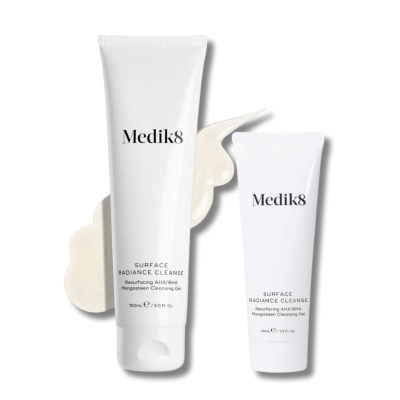 Restore a soft, radiant-looking complexion with Medik8’s Cleanse & Go Duo, featuring both a full-size and travel-size Surface Radiance Cleanse. The refreshing gel-to-foam cleanser delivers a detoxifying cleanse, helping to remove impurities, excess oil and daily build-up for skin that feels clean, smooth and revitalised.