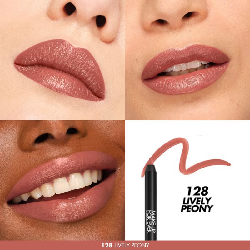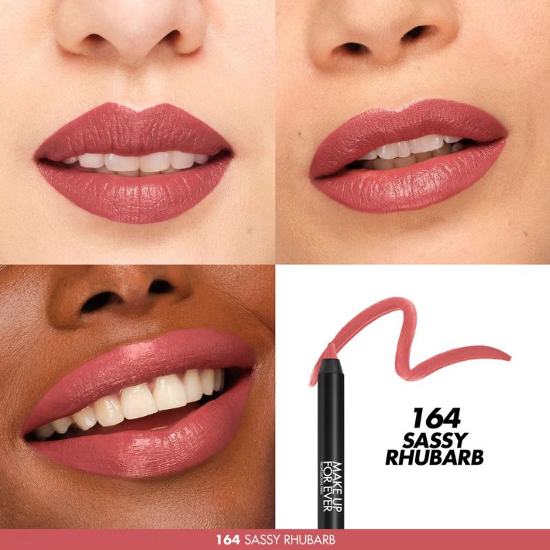 The transfer-resistant and smudge-proof formula provides bold colour payoff without drying out the lips, ensuring comfortable, all-day wear. Perfect for pairing with your favorite MAKE UP FOR EVER lipstick or lip gloss, the multi-use pencil can also be applied to the eyes, brows, and cheeks for sharp lines or softly blended color.
